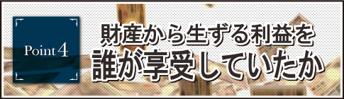 預金であれば利息、株式であれば配当といったような財産から生ずる利益をだれが享受していたかという点です。