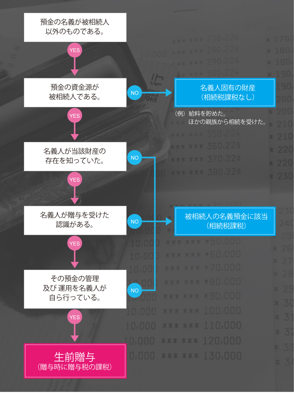 いうまでもなく、名義預金に該当すれば、故人の相続財産として追徴課税になるからです。